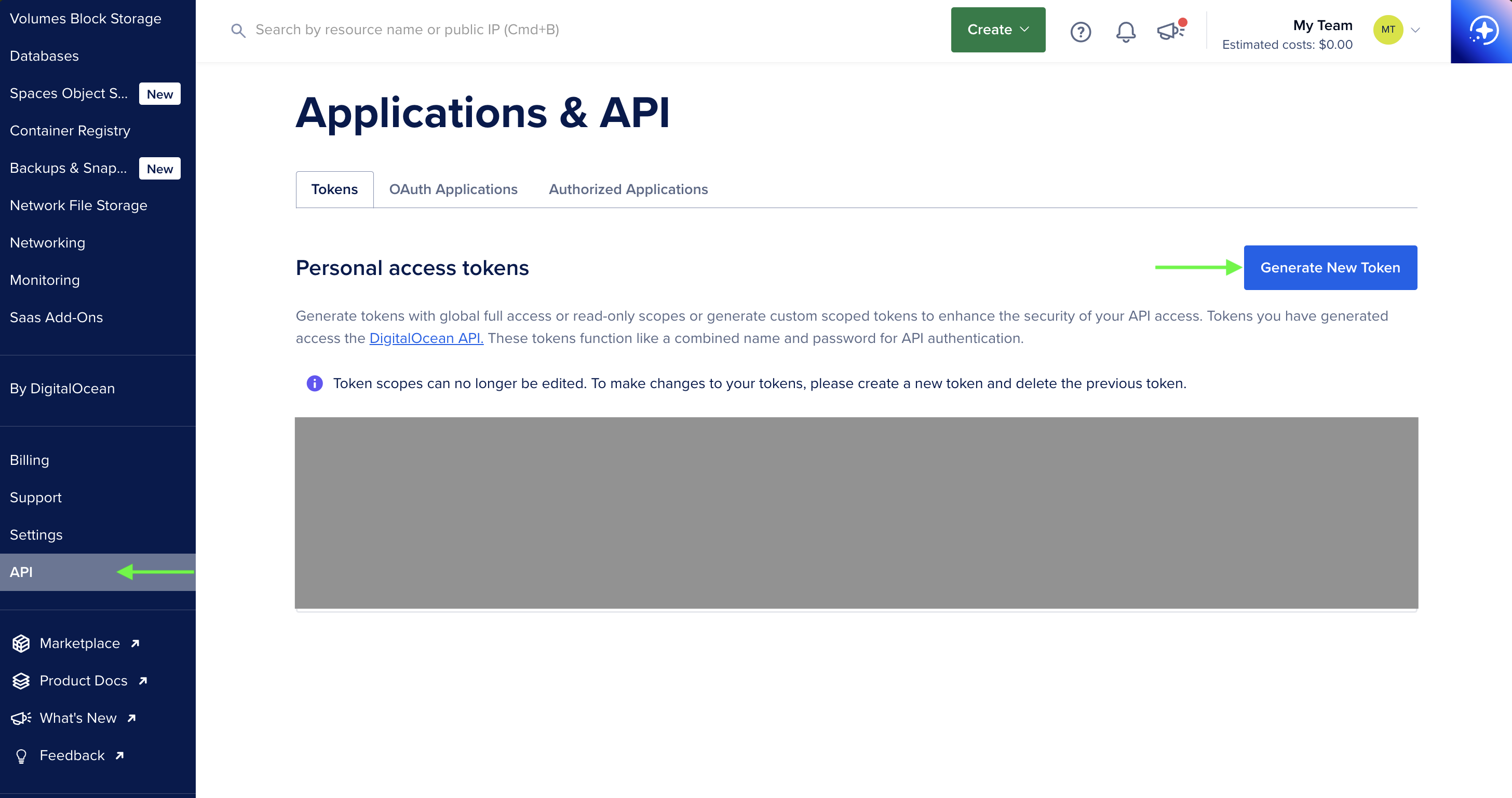 - สร้าง Digital Ocean API token (แบบ Read/Write) เพื่อให้ Runner Manager ใช้ติดต่อกับ DigitalOcean ในการสร้างและลบ Ephemeral Runners อัตโนมัติ (Auto Scaling)